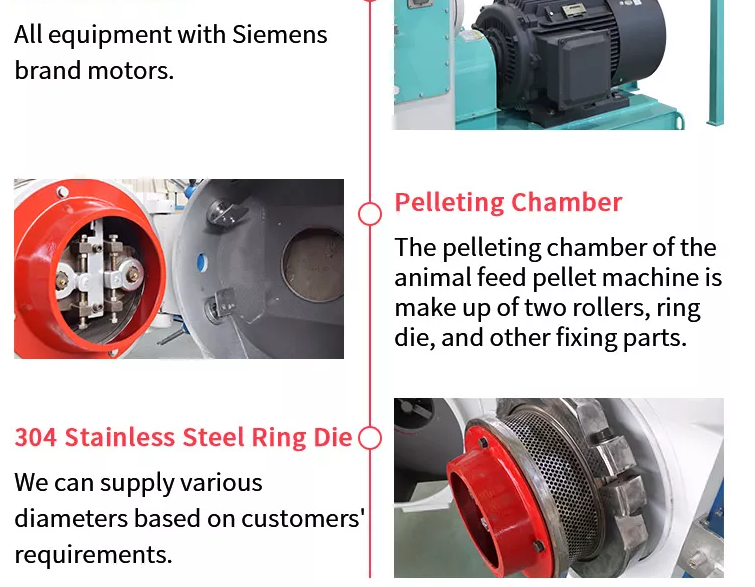 Feed can be divided into livestock feed, poultry feed, ruminant feed, aquatic product feed and other feeds,according to different demands we can design and manufacture . In the total line the main equipment feed pellet making machine is a ring die mould large-capacity feed making pellet machine designed.